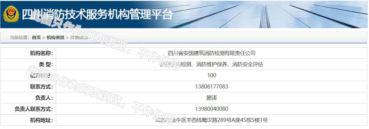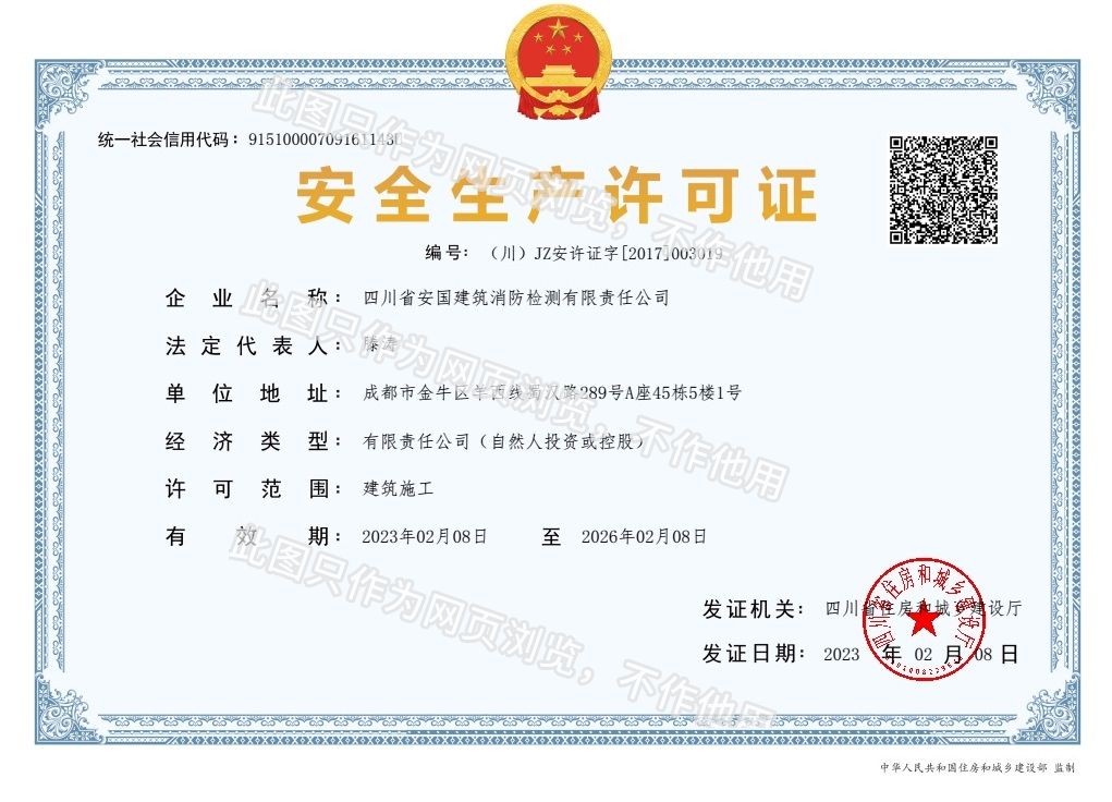 四川省安國建筑消防檢測有限責(zé)任公司,成立于1998年,經(jīng)四川省公安消防總隊批準,工商部門注冊的獨立法人單位。